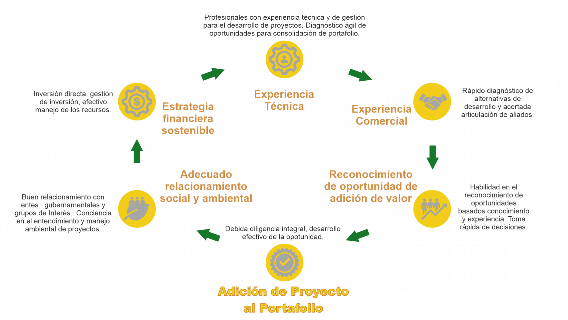 Nos enfocamos en proyectos en los que reconocemos el potencial de adición de valor, y de la mano de nuestros aliados estratégicos, nos integramos en el desarrollo de los mismos, a través de la correcta asignación de capital y en conjunto con un equipo humano competente y comprometido.